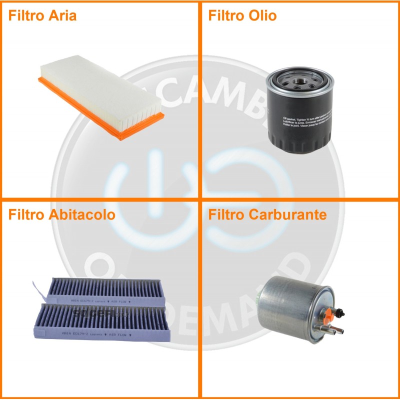 ComposizioneFiltro gasolio, Filtro olio, Filtro abitacolo ai carboni attivi, Filtro aria
