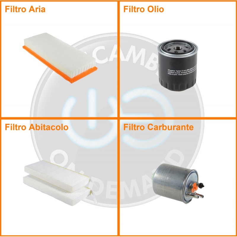 ComposizioneFiltro gasolio, Filtro olio, Filtro abitacolo, Filtro aria