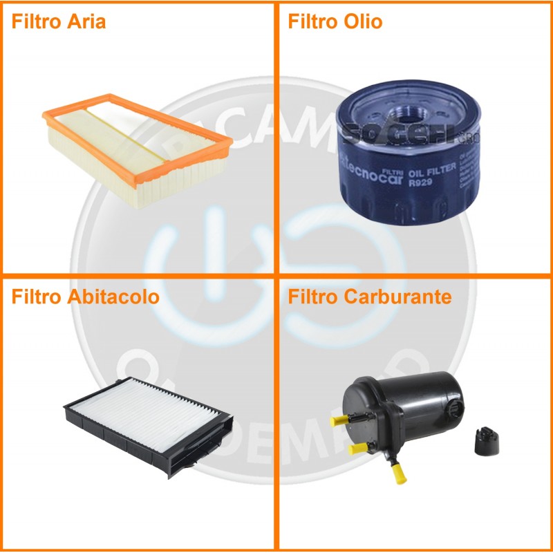 ComposizioneFiltro abitacolo, Filtro aria, Filtro gasolio, Filtro olio