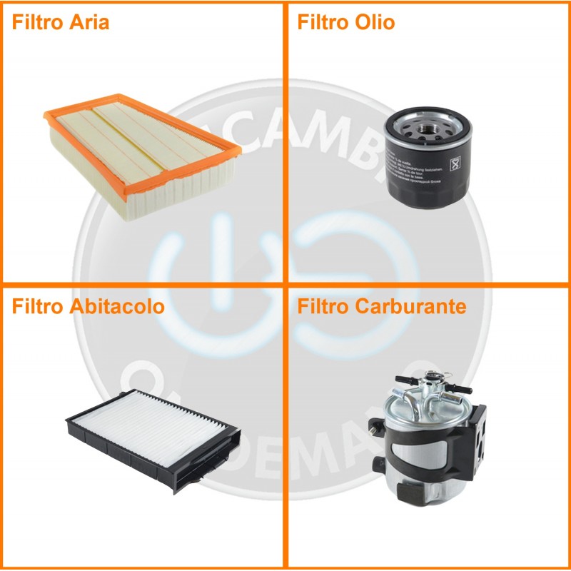 ComposizioneFiltro abitacolo, Filtro aria, Filtro gasolio, Filtro olio