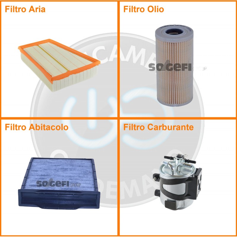 ComposizioneFiltro abitacolo ai carboni attivi, Filtro aria, Filtro gasolio, Filtro olio