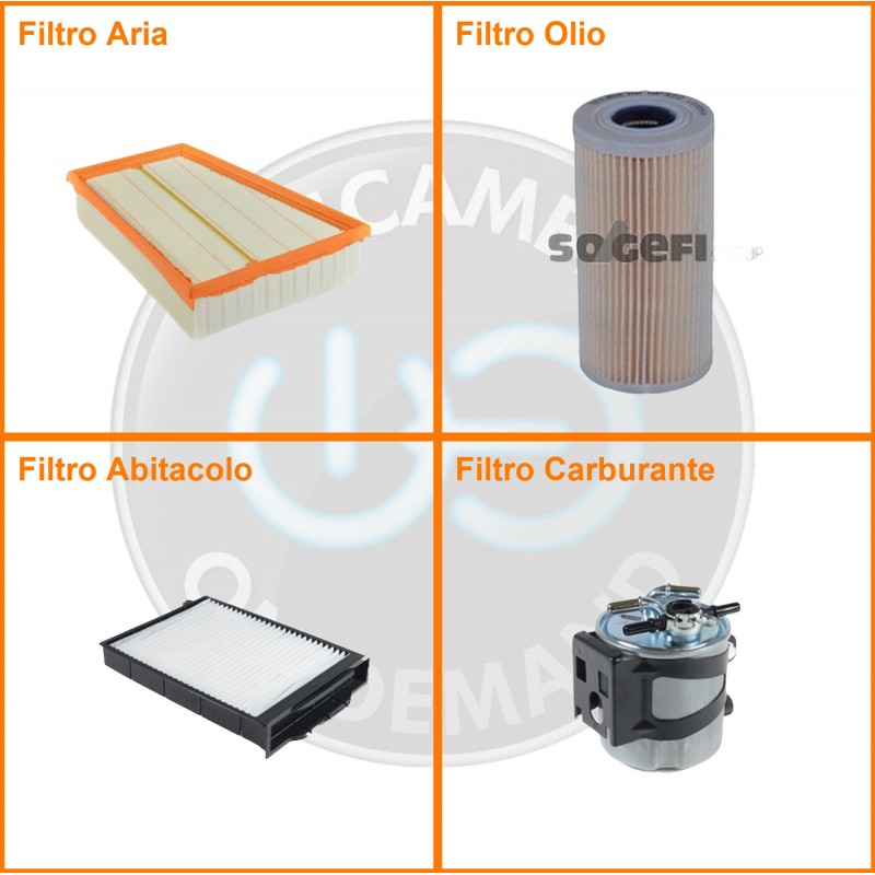 ComposizioneFiltro gasolio, Filtro olio, Filtro abitacolo, Filtro aria