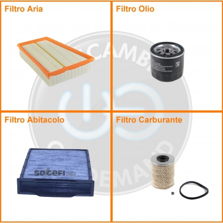 ComposizioneFiltro gasolio, Filtro olio, Filtro abitacolo ai carboni attivi, Filtro aria