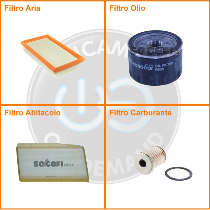 ComposizioneFiltro gasolio, Filtro olio, Filtro abitacolo, Filtro aria