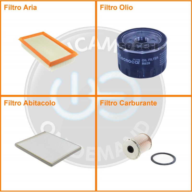 ComposizioneFiltro gasolio, Filtro olio, Filtro abitacolo, Filtro aria