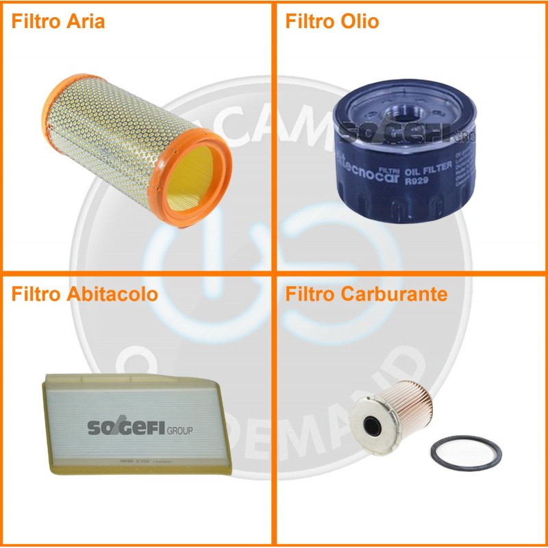 ComposizioneFiltro gasolio, Filtro olio, Filtro abitacolo, Filtro aria