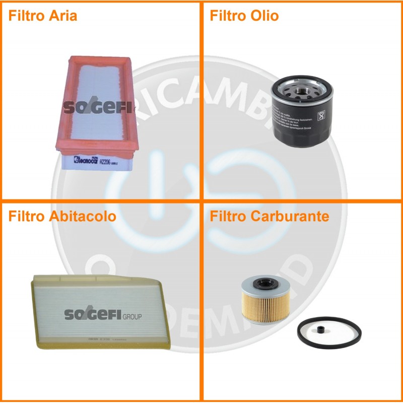 ComposizioneFiltro abitacolo, Filtro aria, Filtro gasolio, Filtro olio
