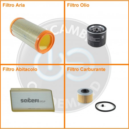 ComposizioneFiltro gasolio, Filtro olio, Filtro abitacolo, Filtro aria