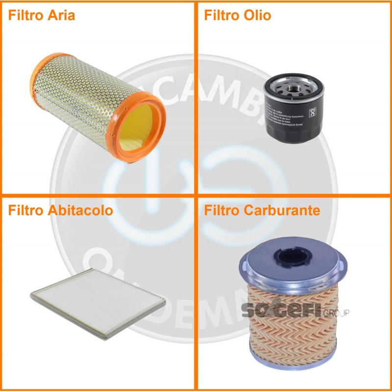 ComposizioneFiltro abitacolo, Filtro aria, Filtro gasolio, Filtro olio