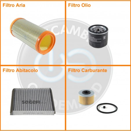 ComposizioneFiltro gasolio, Filtro olio, Filtro abitacolo ai carboni attivi, Filtro aria