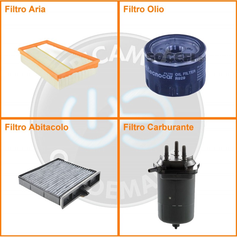 ComposizioneFiltro abitacolo ai carboni attivi, Filtro aria, Filtro gasolio, Filtro olio