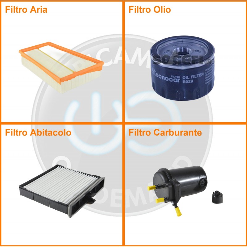 ComposizioneFiltro gasolio, Filtro olio, Filtro abitacolo, Filtro aria
