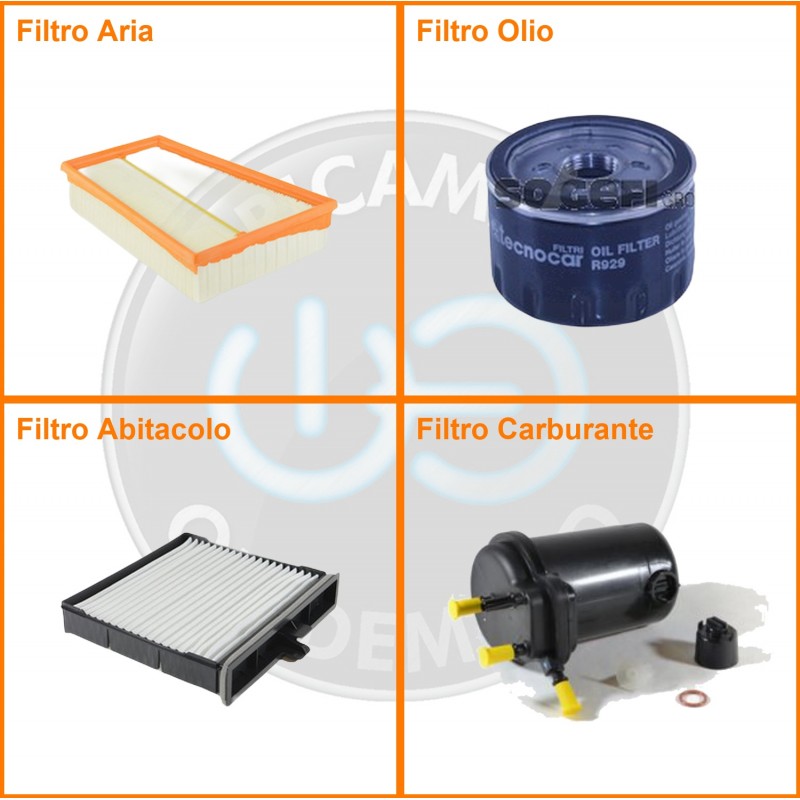 ComposizioneFiltro gasolio, Filtro olio, Filtro abitacolo, Filtro aria
