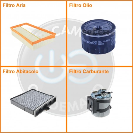 ComposizioneFiltro aria, Filtro gasolio, Filtro olio, Filtro abitacolo ai carboni attivi