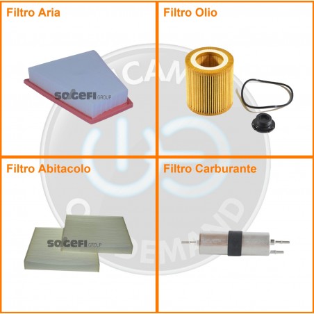 ComposizioneFiltro benzina, Filtro olio, Filtro abitacolo, Filtro aria