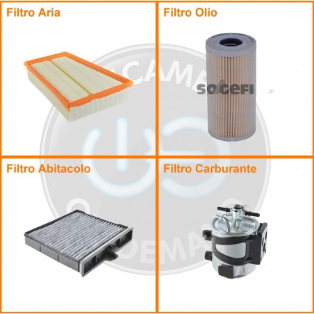 ComposizioneFiltro gasolio, Filtro olio, Filtro abitacolo ai carboni attivi, Filtro aria