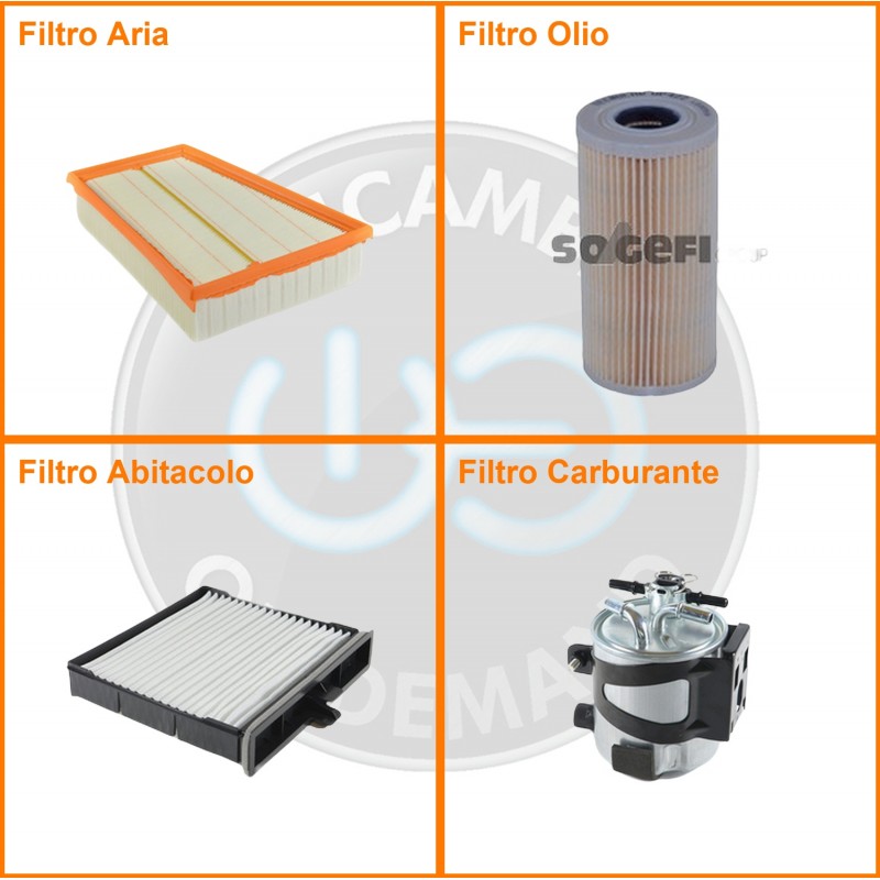 ComposizioneFiltro aria, Filtro gasolio, Filtro olio, Filtro abitacolo