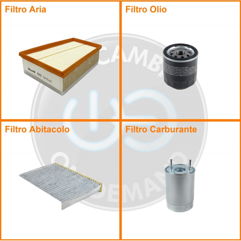 ComposizioneFiltro gasolio, Filtro olio, Filtro abitacolo ai carboni attivi, Filtro aria