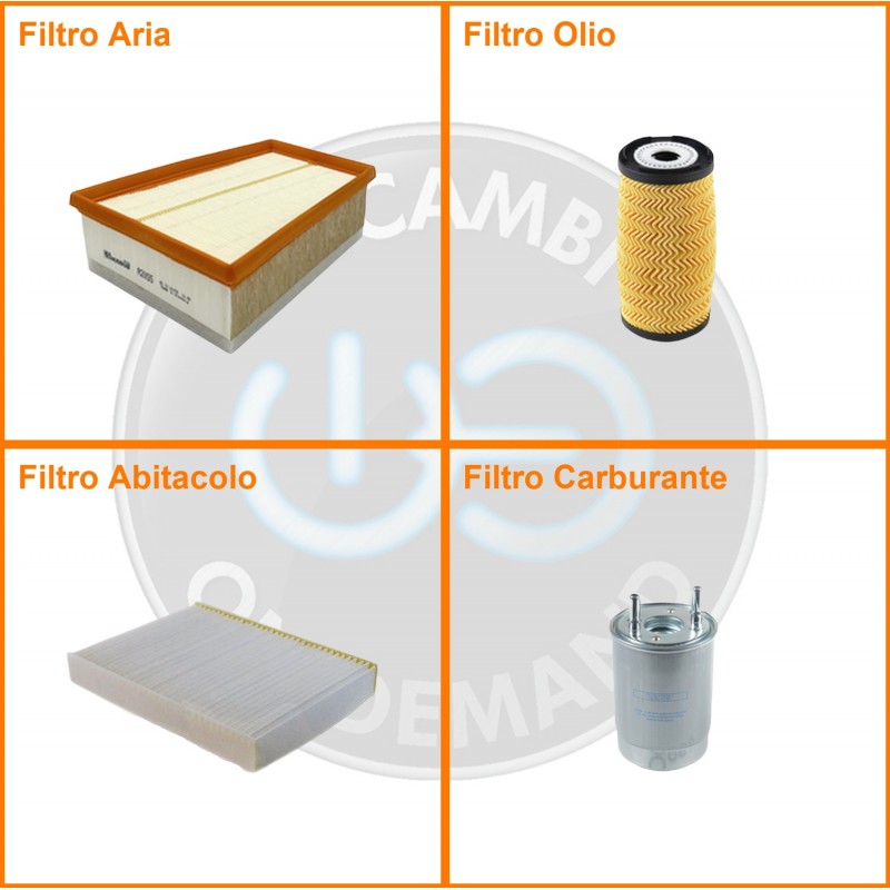 ComposizioneFiltro abitacolo, Filtro aria, Filtro gasolio, Filtro olio