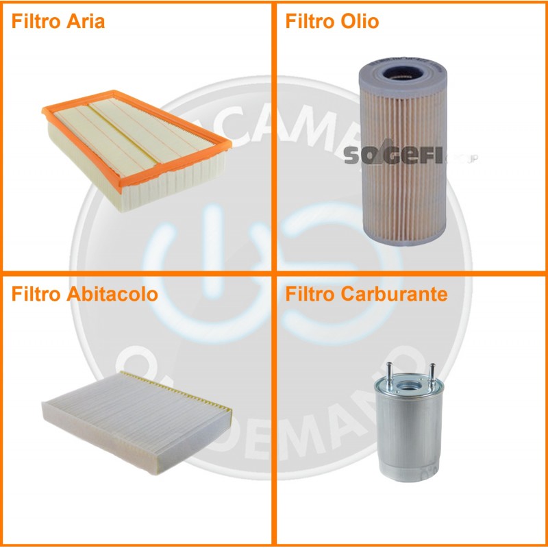 ComposizioneFiltro abitacolo, Filtro aria, Filtro gasolio, Filtro olio