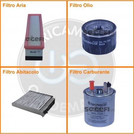 ComposizioneFiltro abitacolo ai carboni attivi, Filtro aria, Filtro gasolio, Filtro olio