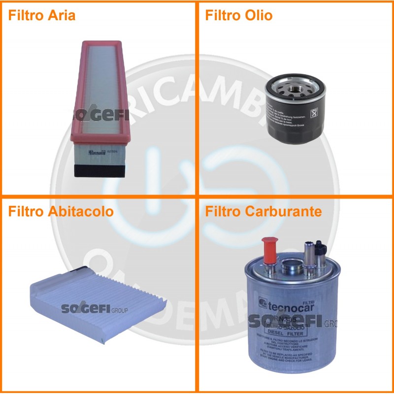 ComposizioneFiltro olio, Filtro abitacolo, Filtro aria, Filtro gasolio