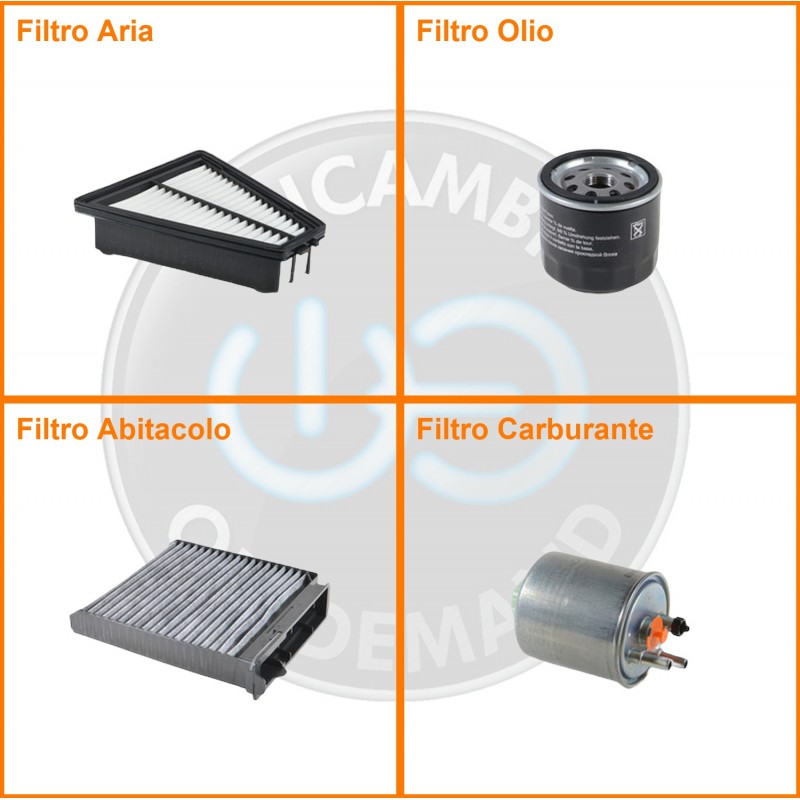 ComposizioneFiltro gasolio, Filtro olio, Filtro abitacolo ai carboni attivi, Filtro aria