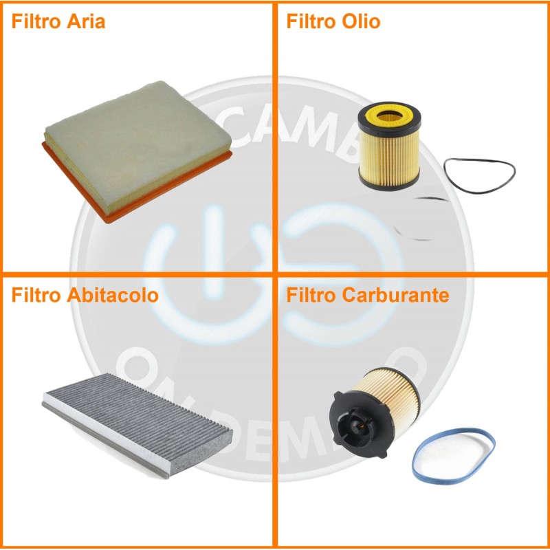 ComposizioneFiltro gasolio, Filtro olio, Filtro abitacolo ai carboni attivi, Filtro aria