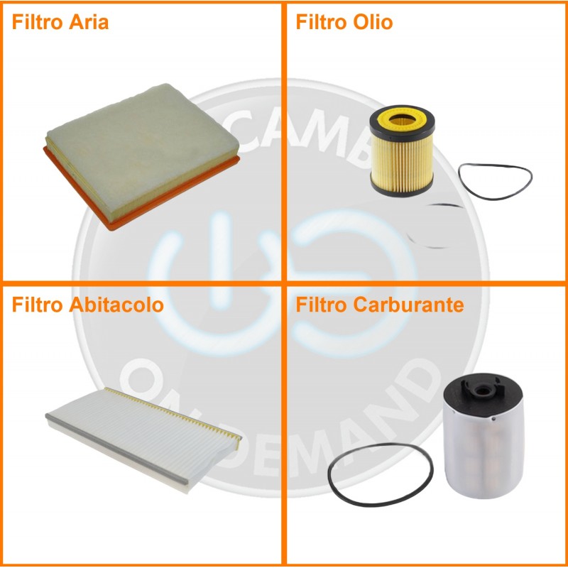 ComposizioneFiltro gasolio, Filtro olio, Filtro abitacolo, Filtro aria