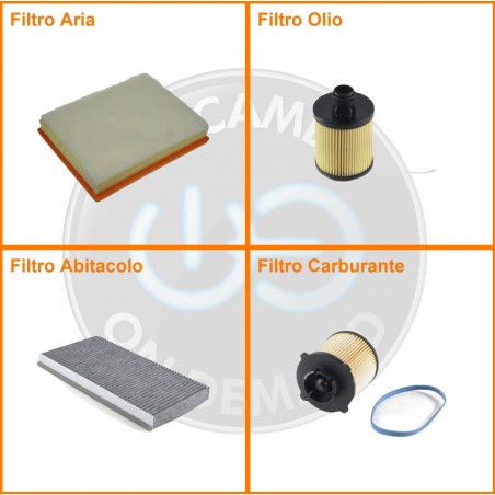 ComposizioneFiltro gasolio, Filtro olio, Filtro abitacolo ai carboni attivi, Filtro aria