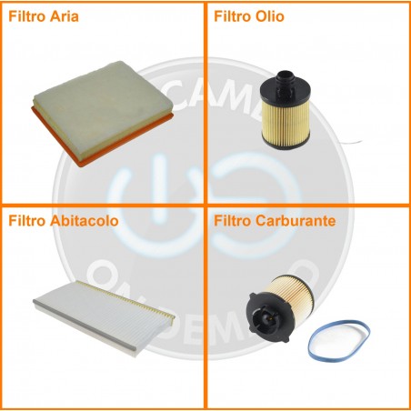ComposizioneFiltro gasolio, Filtro olio, Filtro abitacolo, Filtro aria