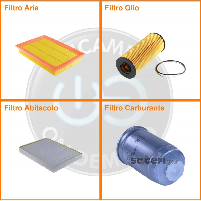 ComposizioneFiltro gasolio, Filtro olio, Filtro abitacolo, Filtro aria