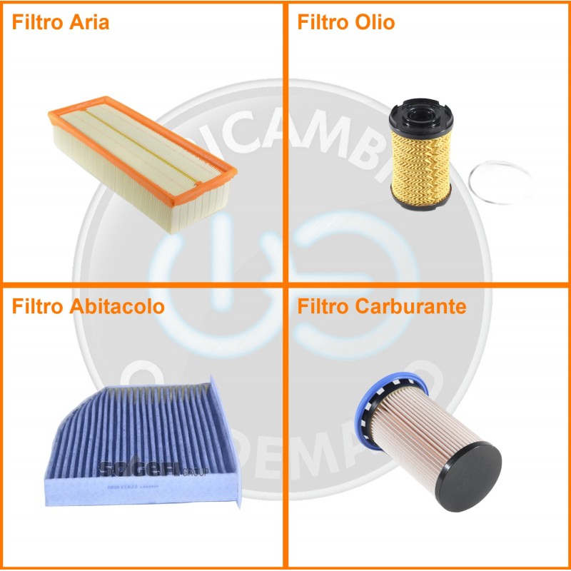 ComposizioneFiltro abitacolo ai carboni attivi, Filtro aria, Filtro gasolio, Filtro olio