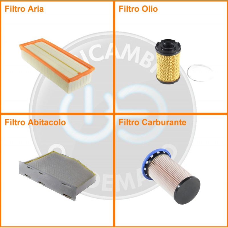 ComposizioneFiltro olio, Filtro abitacolo, Filtro aria, Filtro gasolio
