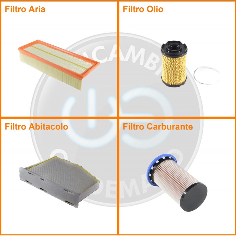 ComposizioneFiltro gasolio, Filtro olio, Filtro abitacolo, Filtro aria