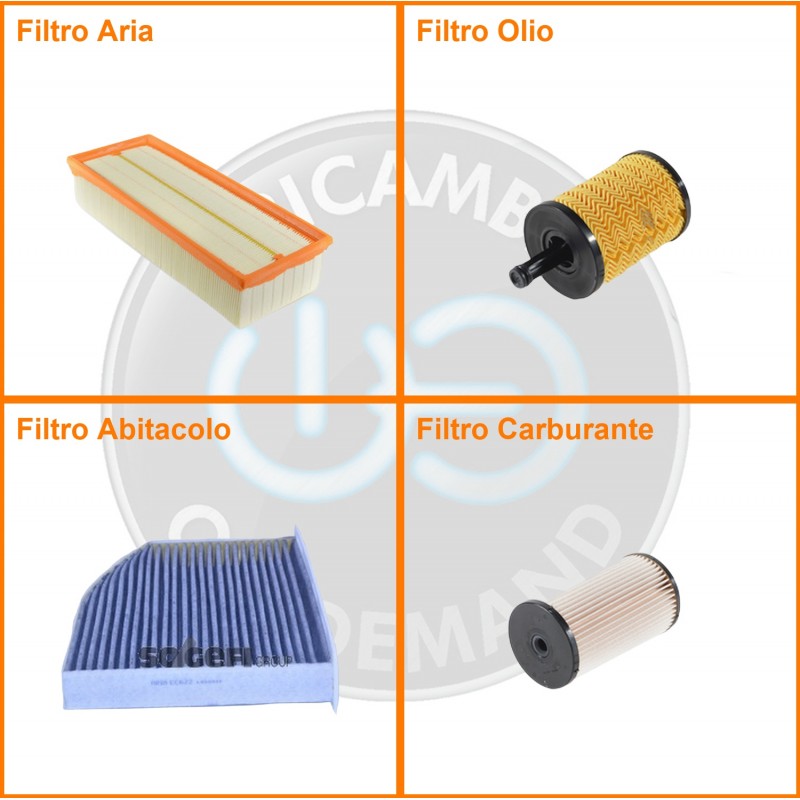 ComposizioneFiltro abitacolo ai carboni attivi, Filtro aria, Filtro gasolio, Filtro olio