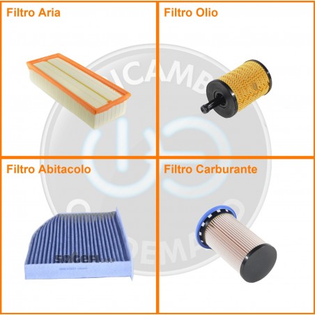 ComposizioneFiltro gasolio, Filtro olio, Filtro abitacolo ai carboni attivi, Filtro aria