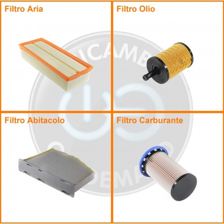 ComposizioneFiltro abitacolo, Filtro aria, Filtro gasolio, Filtro olio