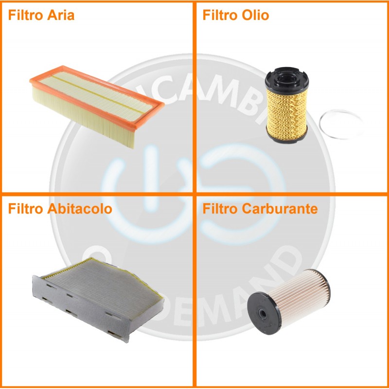 ComposizioneFiltro abitacolo, Filtro aria, Filtro gasolio, Filtro olio