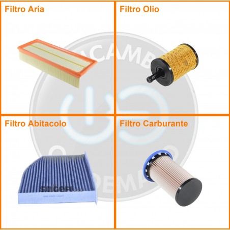 ComposizioneFiltro abitacolo ai carboni attivi, Filtro aria, Filtro gasolio, Filtro olio