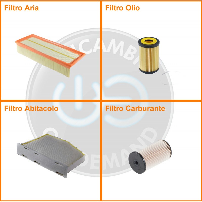 ComposizioneFiltro aria, Filtro gasolio, Filtro olio, Filtro abitacolo