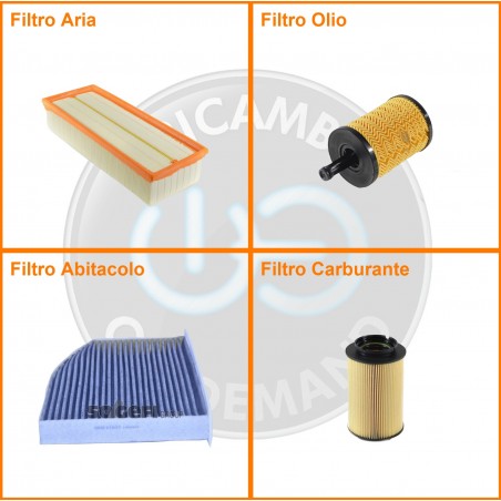 ComposizioneFiltro olio, Filtro abitacolo ai carboni attivi, Filtro aria, Filtro gasolio
