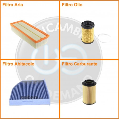 ComposizioneFiltro aria, Filtro gasolio, Filtro olio, Filtro abitacolo ai carboni attivi