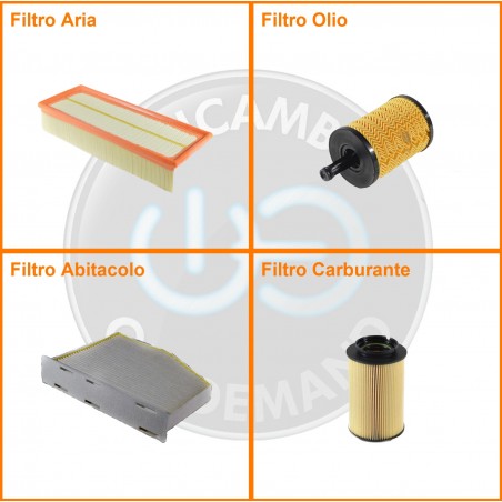 ComposizioneFiltro gasolio, Filtro olio, Filtro abitacolo, Filtro aria