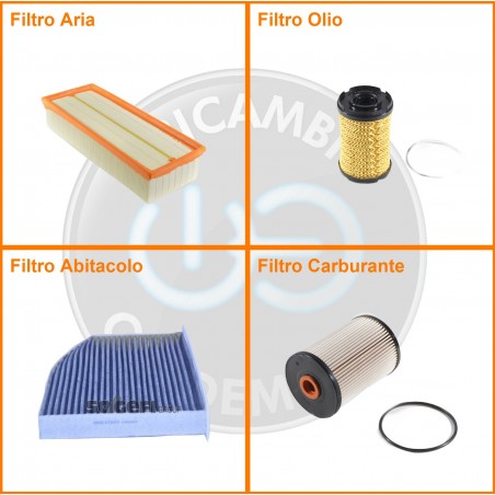 ComposizioneFiltro olio, Filtro abitacolo ai carboni attivi, Filtro aria, Filtro gasolio