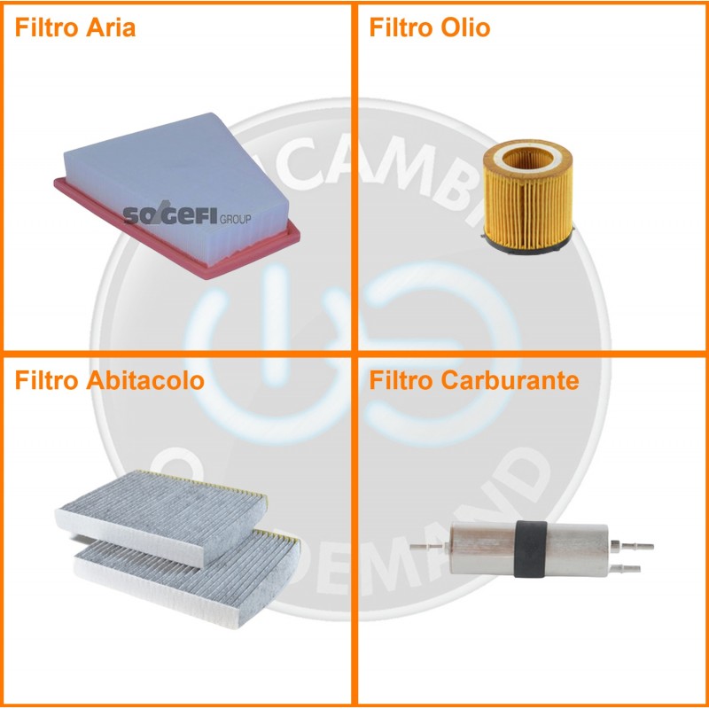 ComposizioneFiltro abitacolo ai carboni attivi, Filtro aria, Filtro benzina, Filtro olio