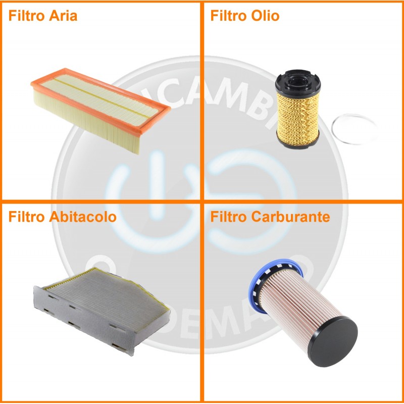 ComposizioneFiltro abitacolo, Filtro aria, Filtro gasolio, Filtro olio