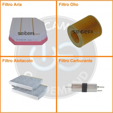ComposizioneFiltro benzina, Filtro olio, Filtro abitacolo ai carboni attivi, Filtro aria