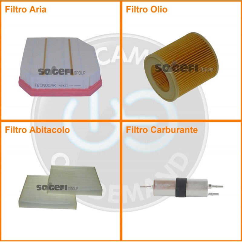 ComposizioneFiltro benzina, Filtro olio, Filtro abitacolo, Filtro aria