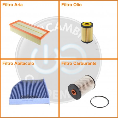 ComposizioneFiltro abitacolo ai carboni attivi, Filtro aria, Filtro gasolio, Filtro olio